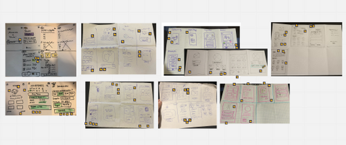 With all the user flows defined, we build a navigational map that combined all the possible paths that a user could take inside our app. We draw crazy 8s to capture how we imagined each of these screens.